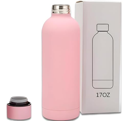 Generic - أنيقة وعملية: زجاجة مياه رياضية محمولة بسعة 500 مل - جزء داخلي مزدوج الجدار من الفولاذ المقاوم للصدأ وجزء خارجي ناعم السيليكون وردي