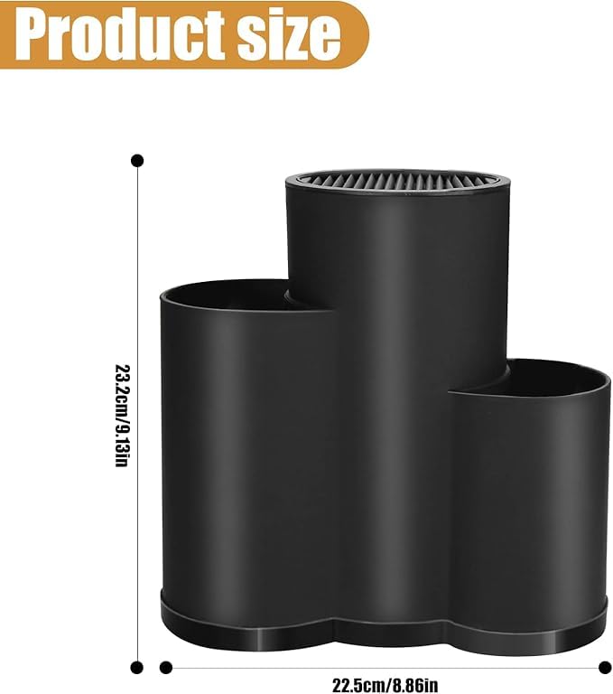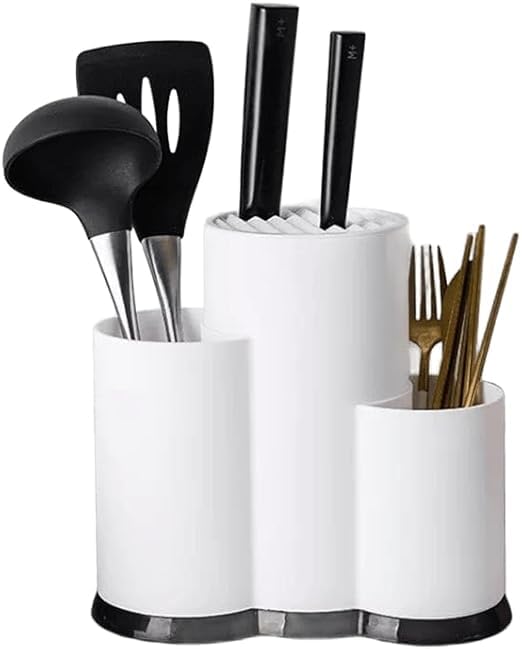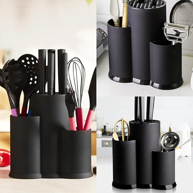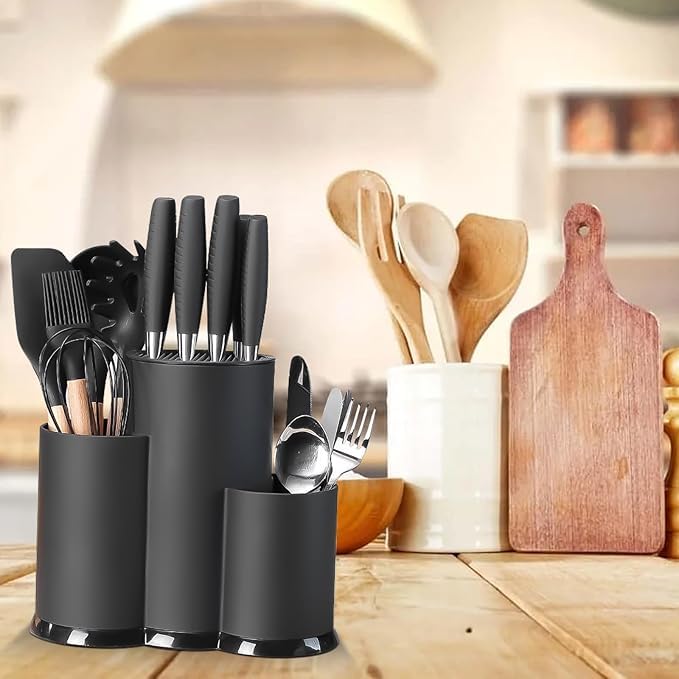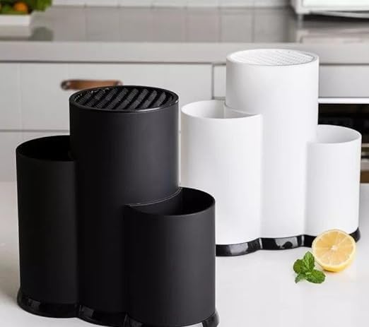 - تصميم متعدد الوظائف: حامل أدوات مطبخ عصري بتصميم دائري يحتوي على عدة فتحات لتنظيم السكاكين والملاعق وأدوات الطبخ المختلفة في مكان واحد