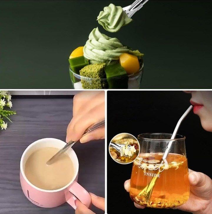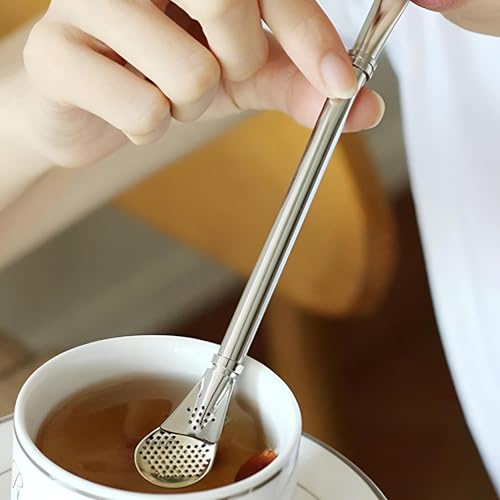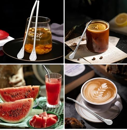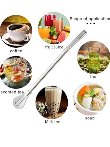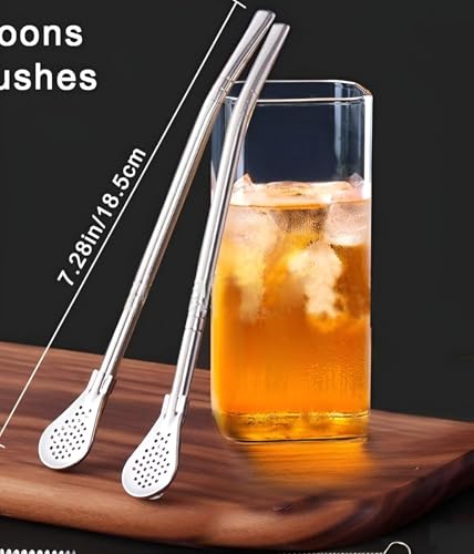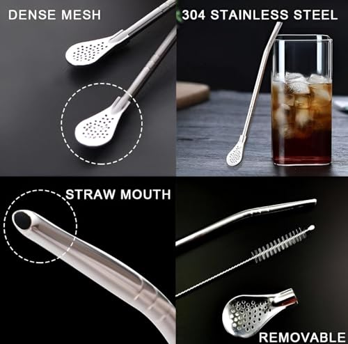 Generic - شفاطة أنيقة - عزز عرض مشروبك مع مجموعة شفاطات رائعة مصنوعة من الفولاذ المقاوم للصدأ، تتميز بملعقة ومصفاة للراحة والأناقة