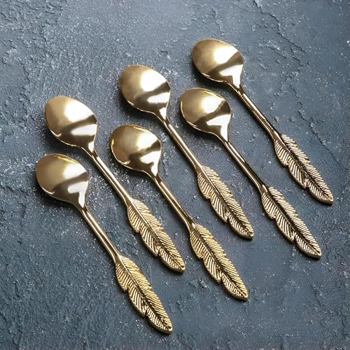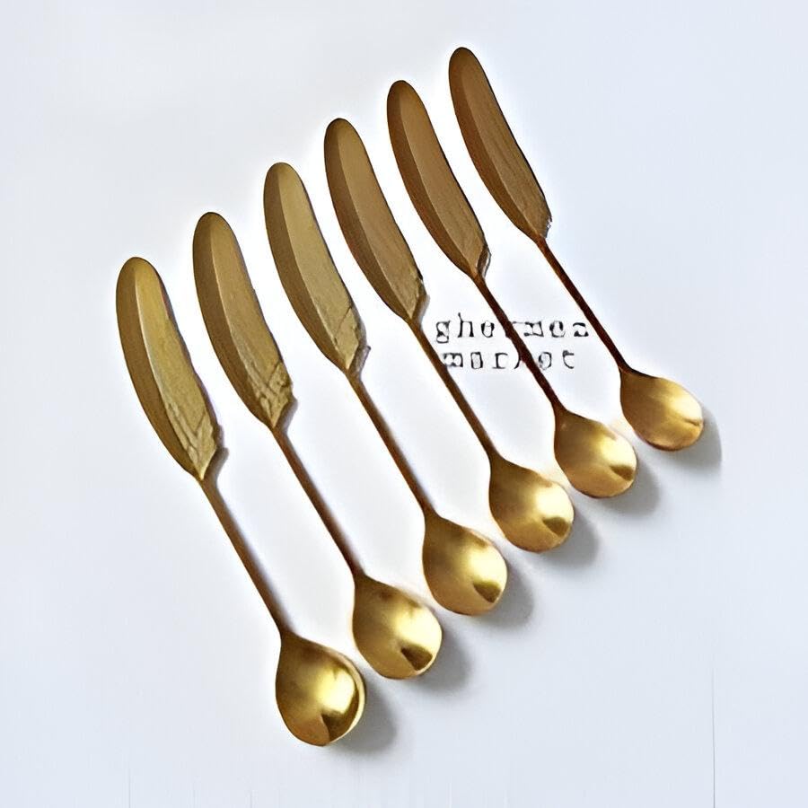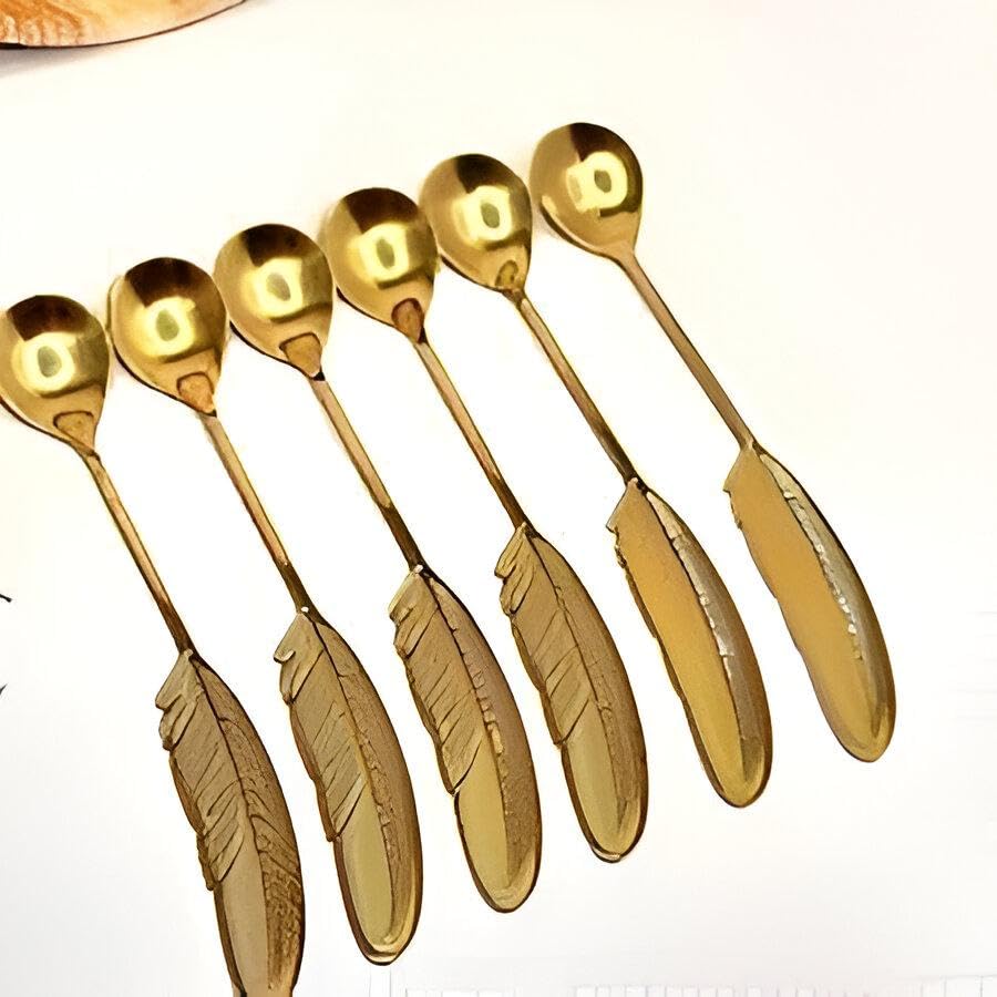 Generic - مجموعة ملاعق انيقة - مجموعة من 6 قطع من الستانلس ستيل للايس كريم والكيك والتوابل مع مقبض من الريش (2 باكة)