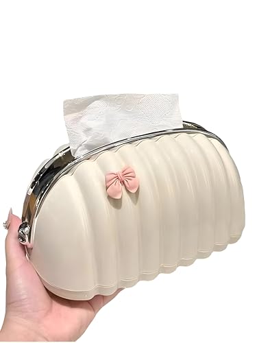 Generic - صندوق مناديل أنيق مصمم كحقيبة يد مزخرفة، يتميز بقوس وسحاب مريح لسهولة الوصول وتخزين المناديل بشكل آمن.
