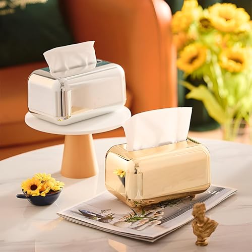 Generic - حامل مناديل أنيق - موزع مناديل اكريليك مصنوع بشكل جميل يجمع بين الأناقة والعملية، مما يجعله اكسسوارا لأي بيئة، (جولد)