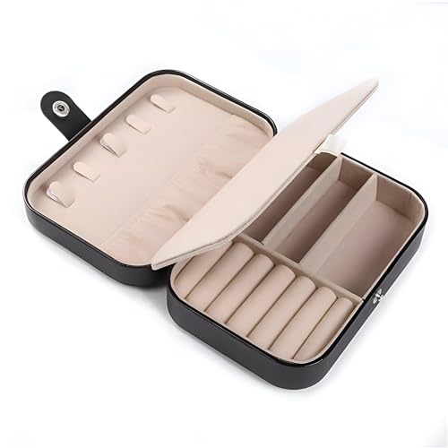 Generic - صندوق سفر انيق للنساء - حافظة مجوهرات انيقة وصغيرة الحجم من الجلد الصناعي مع فواصل، مثالية لتخزين اكسسواراتك بشكل أنيق