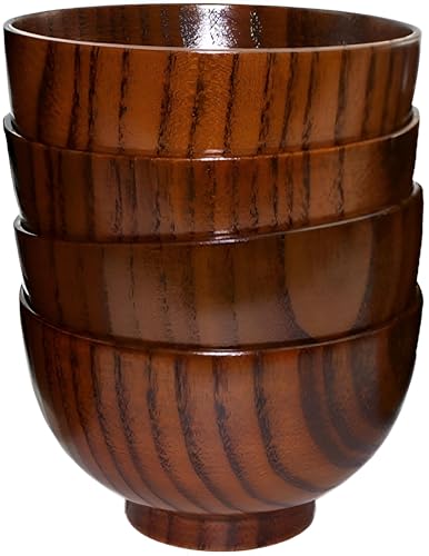 Generic - وعاء خشبي انيق - طبق تقديم متعدد الاستخدامات وقابل لاعادة الاستخدام للفاكهة او السلطة، مثالي لتناول الطعام العصري وأنماط الحياة الصديقة للبيئة (4 قطع 14 سم)