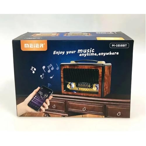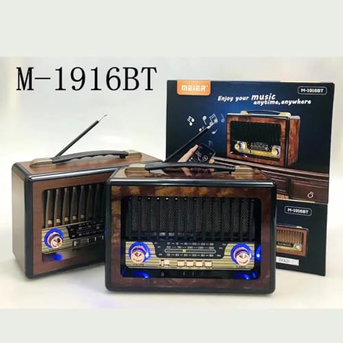 Generic - راديو خشبي أنيق طراز M-1916BT، يعمل على 3 موجات (ايه ام - اف ام - اس دبليو)، يدعم تقنية البلوتوث وUSB وبطاقة TF و منفذ AUX، مع مدخل شحن للتيار المستمر والمتردد، بطارية قابلة لإعادة الشحن، لون ذهبي