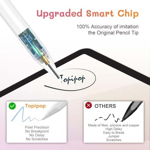 Topipop - قلم ستايلس لجهاز ايباد بخاصية رفض راحة اليد، قلم اكتيف الجيل الثاني متوافق مع ايباد برو 11/12.9 انش (2018-2023)، ايباد الجيل العاشر/ال-السادس، ايباد ميني الجيل 5/6، ايباد اير الجيل الثالث-الخامس