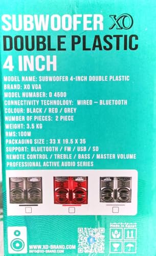 Generic - مضخم صوت يعمل بجهاز تحكم عن بعد 4 بوصة بلاستيك، مزود بمزايا راديو اف ام وبلوتوث ويعمل بفلاشة وUSB ويمكن توصيله بالكمبيوتر او الكمبيوتر المحمول بصوت نقي وعالي، رمادي، قطعتين، XO D 4500