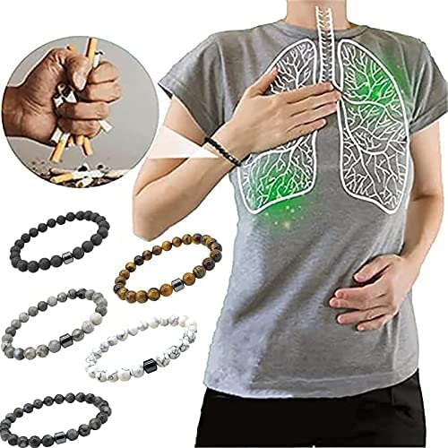 Generic - سوار الإقلاع عن التدخين للرجال، سوار من التورمالين الاسود مع كريستال حجر الدم الطبيعي للجنسين اساور قابلة للتعديل مع قماش من النايلون، خرز شفاء طبيعي 8 ملم, كهرماني