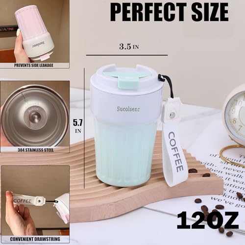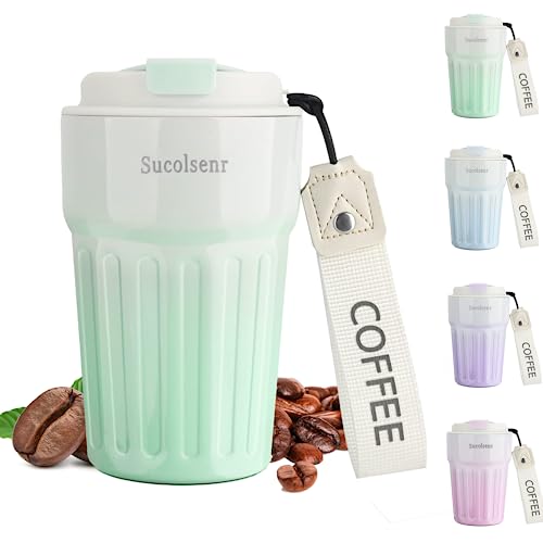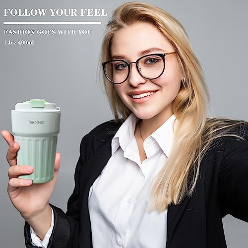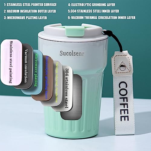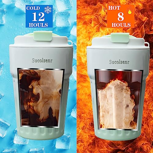 Sucolsenr - كوب قهوة 14 اونصة من سوكولسينر زجاجة محكمة الغلق الستانلس ستيل معزولة بتفريغ الهواء جدار مزدوج للسفر حمل الماء الساخن والبارد للاستخدام الداخلي والخارجي اخضر