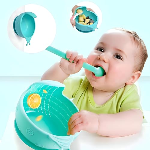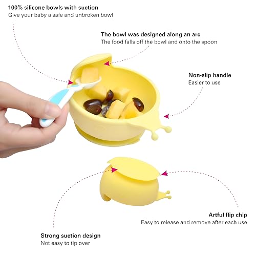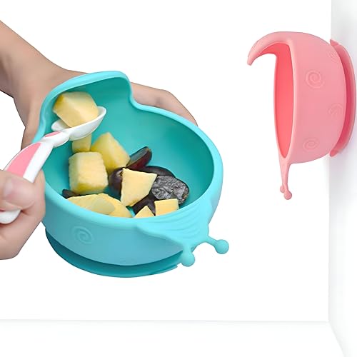 وعاء شفط - طبق سيليكون لطيف على شكل حلزون للاطفال الصغار، غير قابل للانزلاق، خالي من BPA، مناسب للميكروويف، حل تغذية متعدد الوظائف (2)