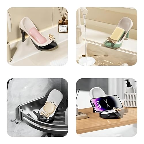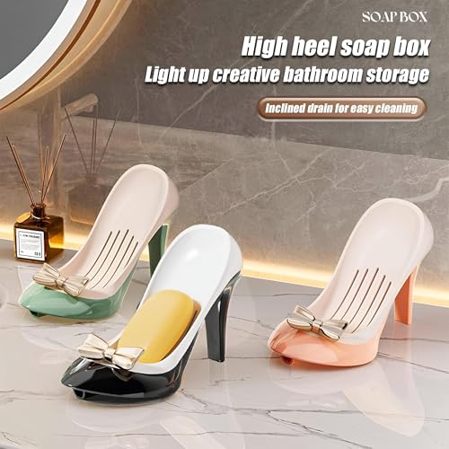 - 【تصميم مبتكر للكعب العالي】: يتميز صندوق الصابون المبتكر ذو الكعب العالي بتصميم فريد من نوعه على شكل كعب عالي مائل بزاوية 45 درجة، مما يسمح بالتجفيف السريع والتصريف الفعال. لا مزيد من تراكم الماء والصابون الطري، مما يضمن بقاء الصابون طازجًا وجافًا لفترة أطول.