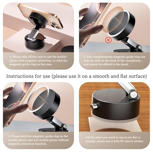 - يتضمن حلقتي توجيه مغناطيسيتين مجانيتين تحولان أي هاتف ذكي - بغض النظر عن العلامة التجارية أو الطراز - إلى جهاز متوافق مع المغناطيس، مما يلغي الحاجة إلى جرابات أو تعديلات خاصة.