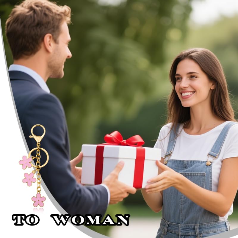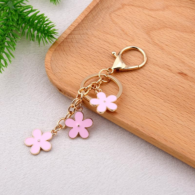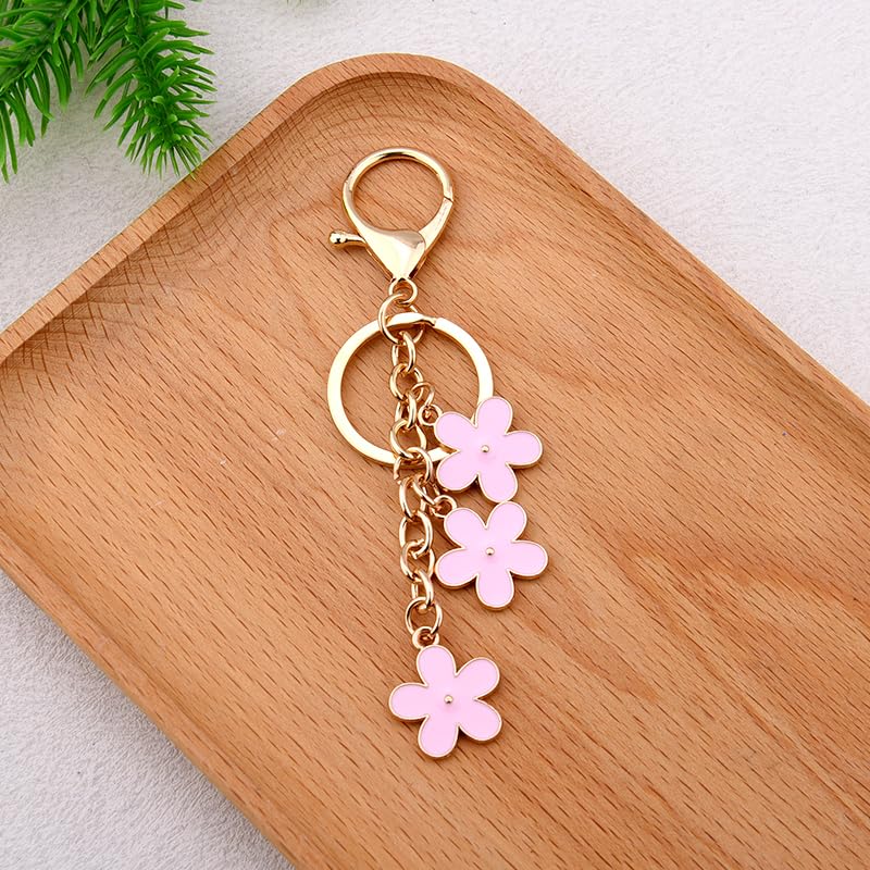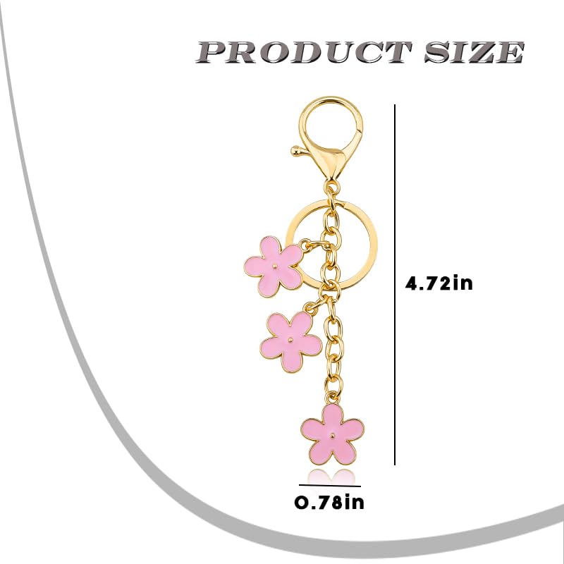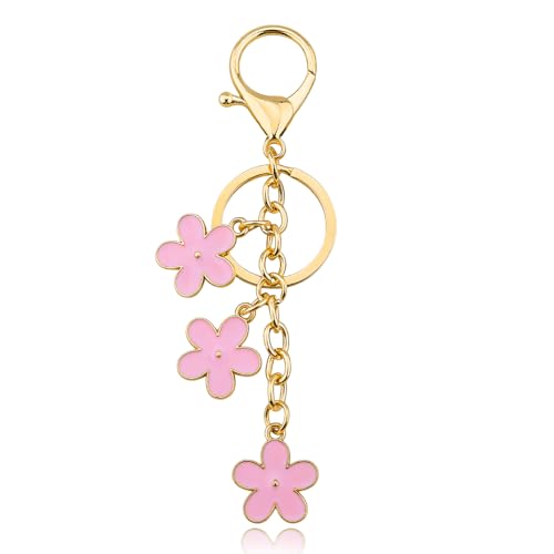 Sudaporn - سلسلة مفاتيح بدلاية على شكل زهرة للشنطة والمحفظة للنساء والبنات، اكسسوارات ديكور لشنط اليد وشنطة الظهر مطلية بالمينا، حلقة مفاتيح لتنظيم مفاتيح السيارة والمنزل والباب، لون ذهبي