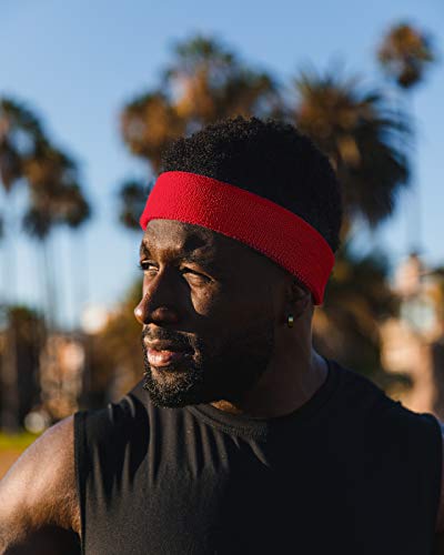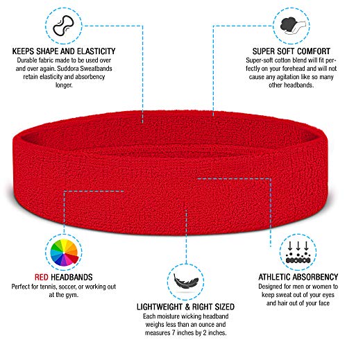 Suddora - رباط رأس رياضي ماص للرطوبة من قماش قطن خفيف الوزن لكرة السلة والتنس وكرة القدم والجيم والجري وملابس الحفلات التنكرية للرجال والنساء من سودورا بلون احمر