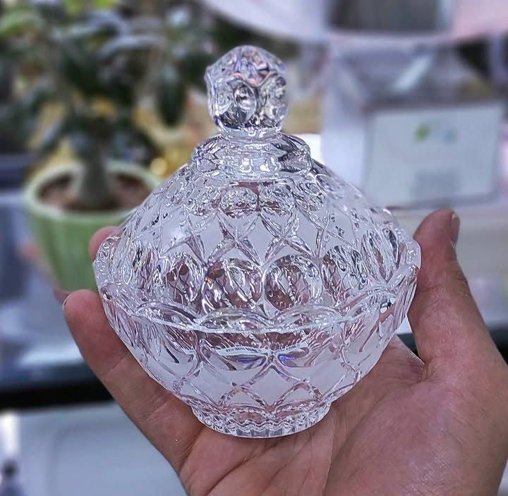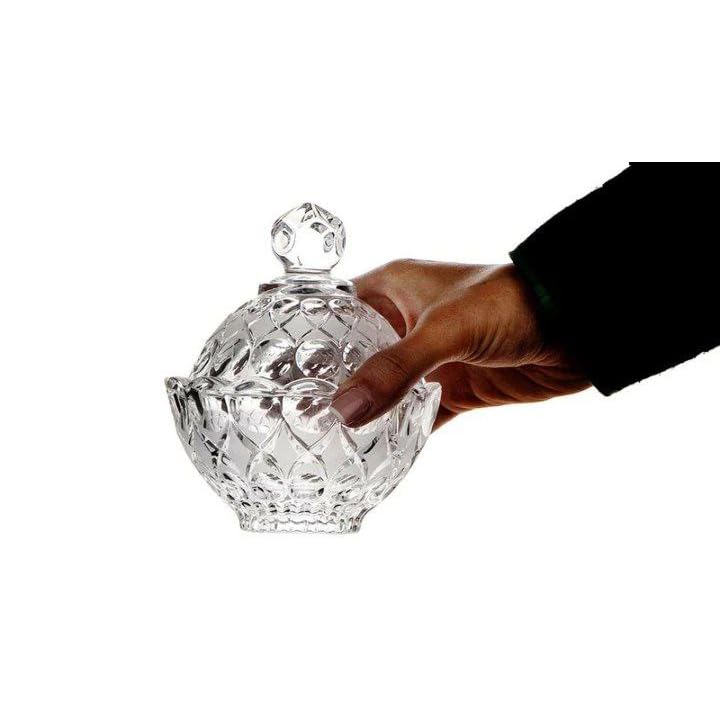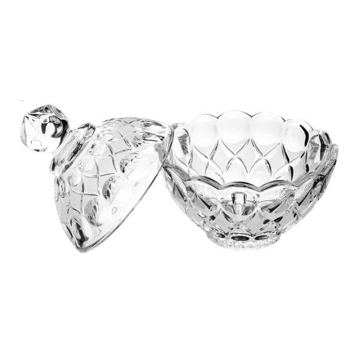 - وعاء سكر مع غطاء زجاجي شفاف مع جدار مضلع وشكل انيق | يستخدم كبرطمان تخزين او بونبونير