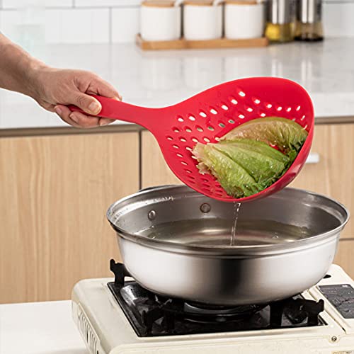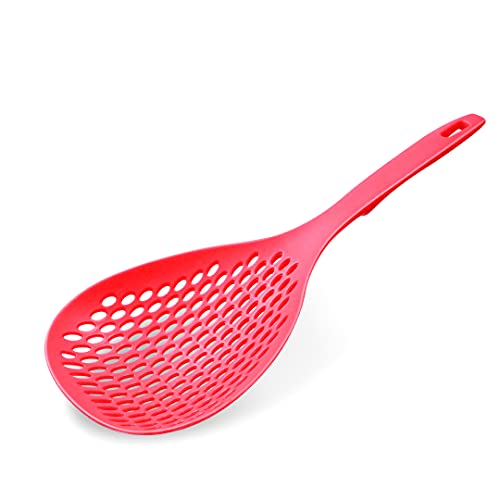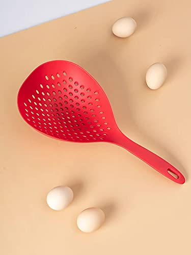 SUGLATR - مصفاة كبيرة من البلاستيك الحراري بتصميم ملعقة عميقة بتصميم فتحات دائرية واسعة، تستخدم كمغرفة ومقصوصة ـ ادوات طبخ مقاومة للحرارة للمطبخ والخبز (M، لون احمر)