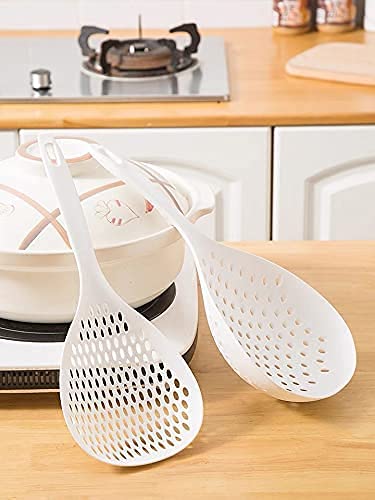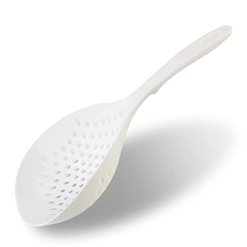 SUGLATR - مصفاة كبيرة من البلاستيك الحراري بتصميم ملعقة عميقة بتصميم فتحات دائرية واسعة، تستخدم كمغرفة ومقصوصة ـ ادوات طبخ مقاومة للحرارة للمطبخ والخبز (M، لون ابيض)