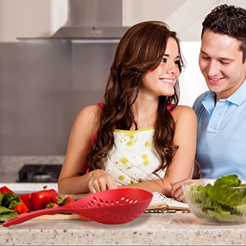 - مواد عالية الجودة: مصنوعة من البلاستيك الحراري (النايلون) مع مقاومة عالية للحرارة يمكن أن تصل إلى 210 درجة مئوية/400 فهرنهايت، الملعقة أخف وزنًا ولن تنقل الحرارة مثل المغارف المعدنية. تمت معالجة المادة أيضًا لتكون مقاومة للالتصاق، مع تصميم بفتحات دائرية واسعة بمقاس مناسب، يمكنك استخدامها لغرف طعامك بسهولة ولا داعي للقلق بشأن البقايا.