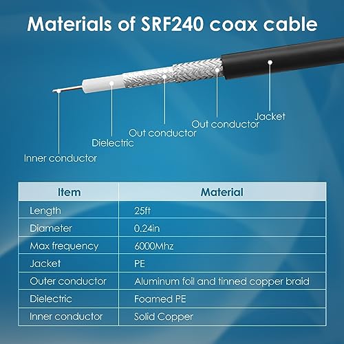 SUIRONG - كابل تمديد محوري SRF240 منخفض الفقد (50 اوم)، كابل موصل N ذكر إلى N ذكر لأنظمة 3G/شبكة الجيل الرابع 4G/شبكة الجيل الخامس 5G/LTE/ADS-B/Ham/نظام تحديد المواقع GPS/واي فاي/راديو RF من سويرونج (7.6 م×2)