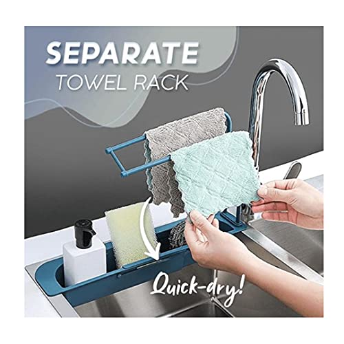 - تصميم قابل للتمدد: يعتمد حامل الإسفنج التلسكوبي على جهاز قابل للسحب قابل للتحريك ويمكن تعديل المقاس بواسطتك. نعتمد تصميم رف المناشف لتجفيف المناشف من أجلك، مما يوفر مساحة مطبخك والشعور السيئ بوضع المنشفة. (الطول القابل للتمدد: 39.5 سم-50 سم/15.55-19.5 انش)
