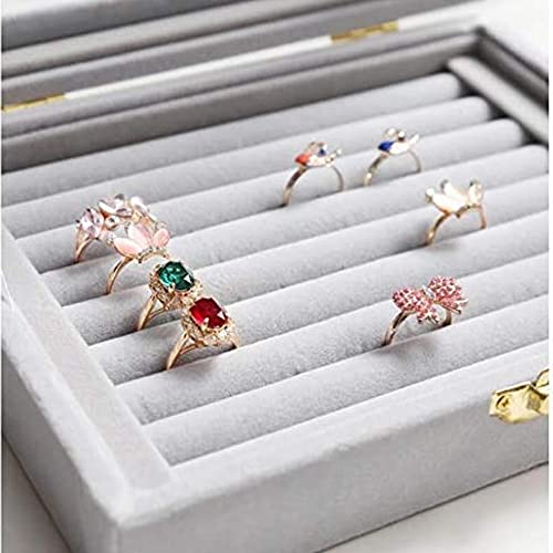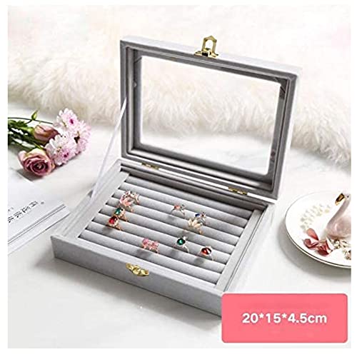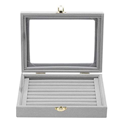 Sulfar - صندوق زجاجي قطيفة لعرض الخواتم من سلفار، حامل مجوهرات، منظم تخزين (صندوق خواتم رمادي)