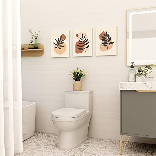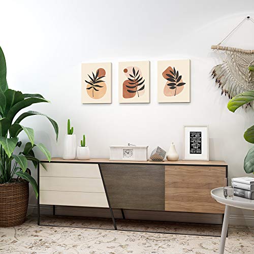 SUMGAR - 3 تابلوهات كانفاس باطار للحائط مقاس 30×40 سم برسمة صخور عليها اوراق نباتات من سامجار للحمام وغرفة المعيشة النوم بوهو ليفز AH175