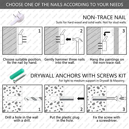 - 【جاهز للتعليق】خطاف معدني مثبت على القضيب الخشبي. تتضمن الأظافر والأظافر التي لا تترك أثرًا من السهل جدًا تعليقها على الحائط.