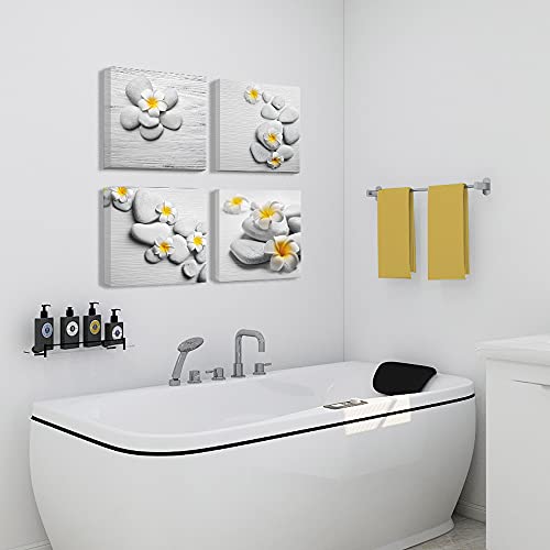 SUMGAR - سمجار لوحات جدارية للحمام بتصميم زهور بيضاء وصفراء فرانجيباني واحجار من القماش مقاس 12 انش × 12 انش × 4 قطع، اصفر 0117015701