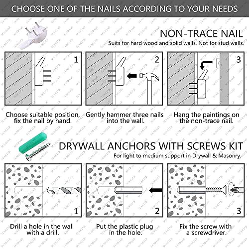 - ملحق مجاني: يتضمن البراغي. إذا لم تتمكن من وضع الثقوب الواضحة على الحائط، فقم بتعليقها بخطافات الأوامر أو المسامير.
