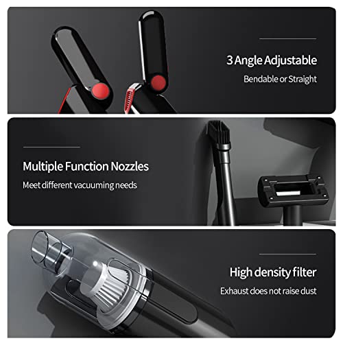 - 【ملحقات سيارة متعددة】: مكنسة كهربائية صغيرة قابلة لإعادة الشحن مع ملحقات مختلفة، غبار صغير في السيارة. سهلة الحمل والتخزين.