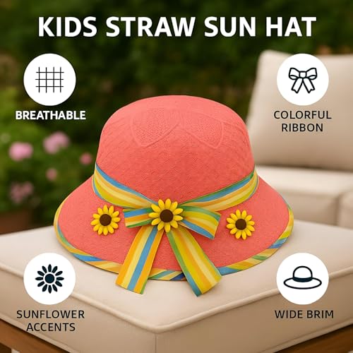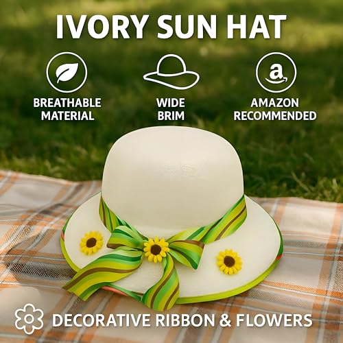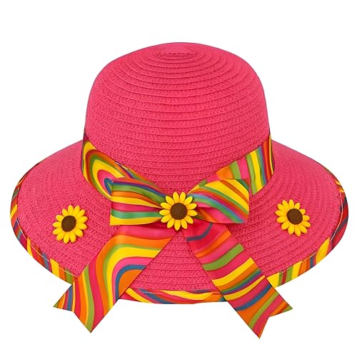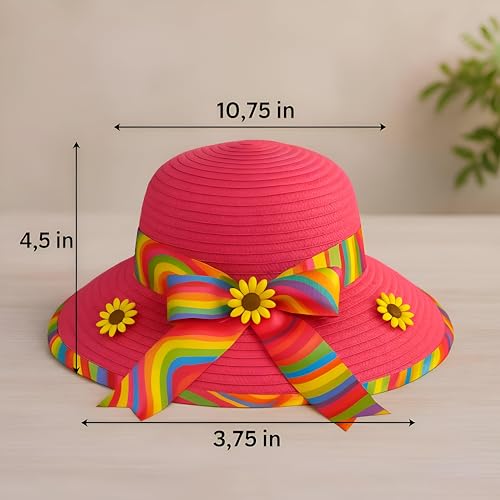 Generic - اكسسوار صيفي - قبعة شمس أنيقة بحافة عريضة تتميز بشريط قوس قزح ولمسات زهرة عباد الشمس الساحرة لأيام الشاطئ