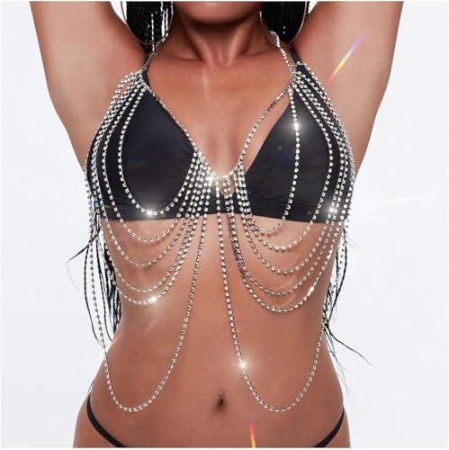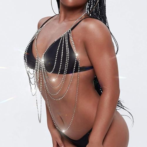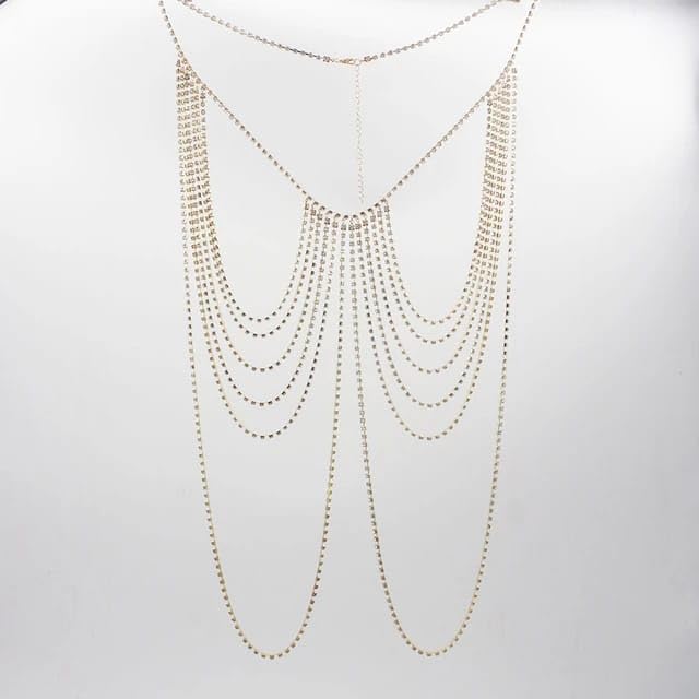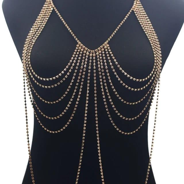 Generic - سلسلة للجسم للصيف والشاطئ، سلاسل صدرية متعددة الطبقات مرصعة بحجر الراين، اكسسوارات مجوهرات للجسم للنساء والفتيات (ذهبي)