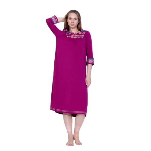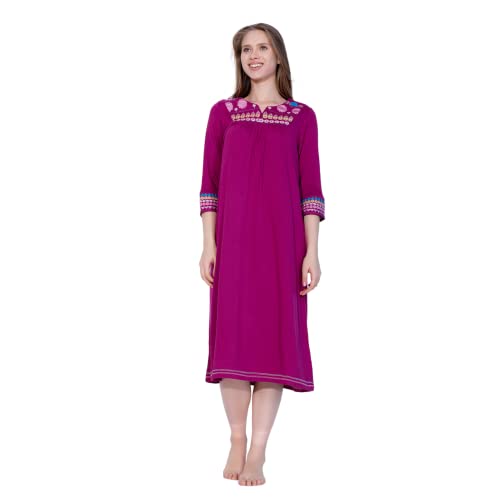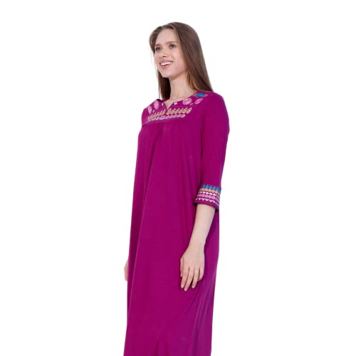 ZECOTEX - ثوب نوم صيفي أنيق مطرز من القطن للنساء، فستان ليلي قصير فريد من نوعه بأكمام، قماش ناعم خفيف وجيد التهوية للارتداء المنزلي