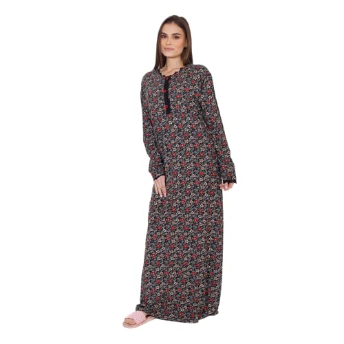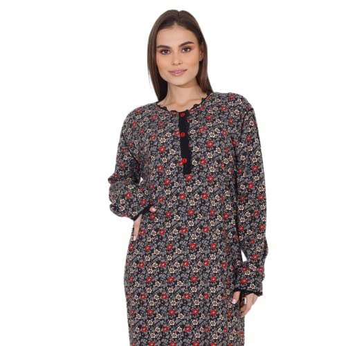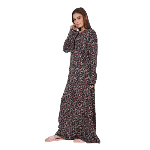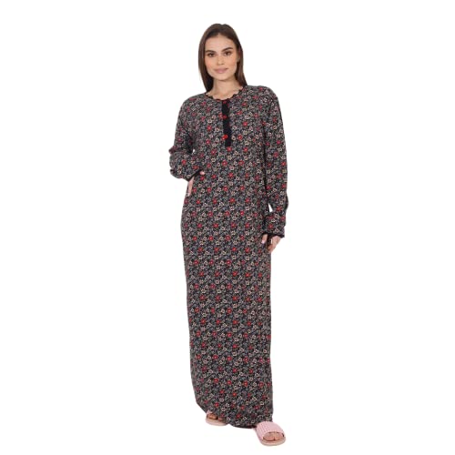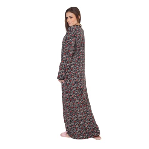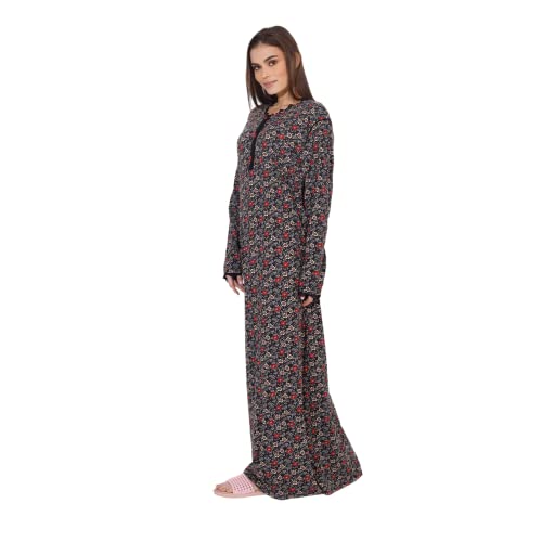 ZECOTEX - رداء نوم طويل صيفي بطبعة أزهار من القطن والليكرا للنساء، عباية كلاسيكية بأكمام طويلة، فستان طويل برقبة دائرية وزرار من قماش ناعم للارتداء في المنزلي