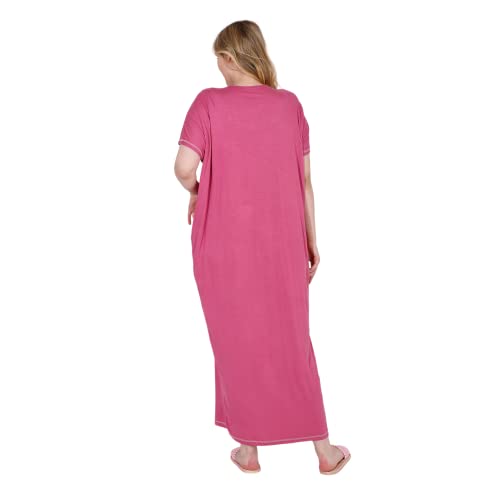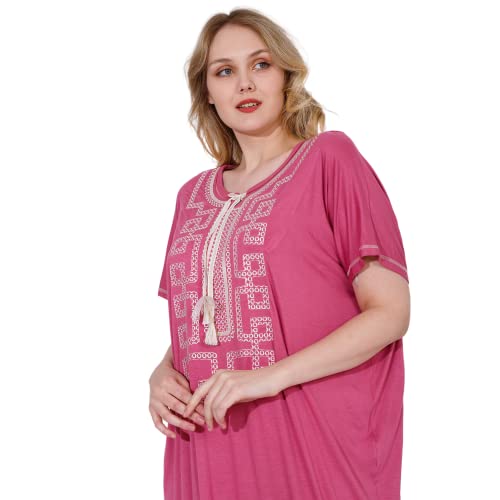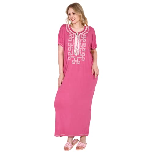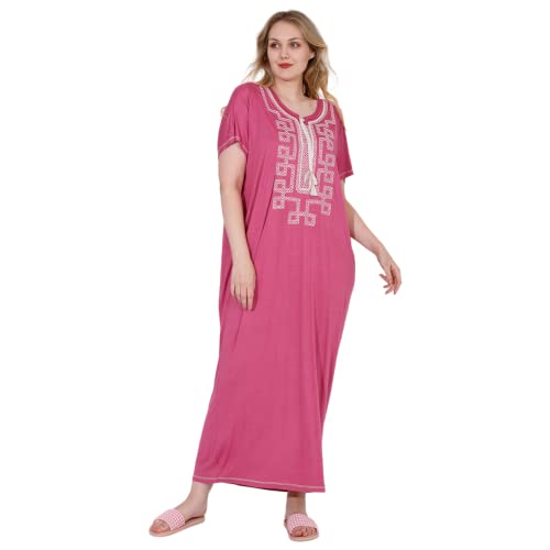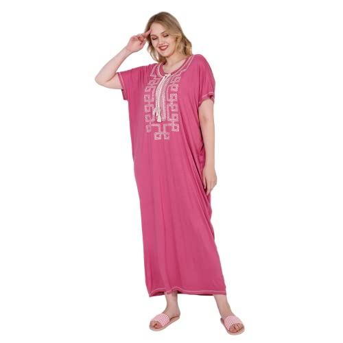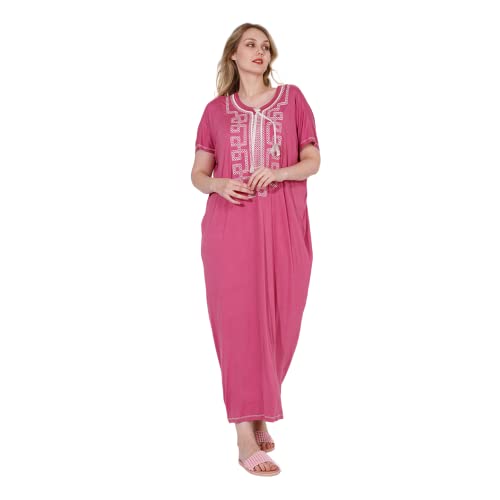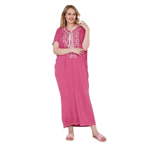 ZECOTEX - عباية ليكرا فسكوز وقطن مريحة للصيف بنصف كم ورقبة دائرية مطرزة من الأمام والأكمام، طويلة بفتحات خاصة، للنساء للنوم والجلوس براحة في المنزل
