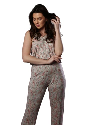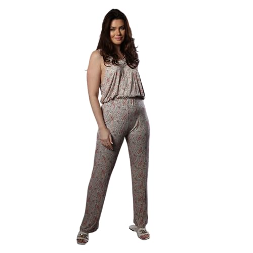 ZECOTEX - سالوبيت صيفي من القطن والفيسكوز والليكرا بنقشة الزهور والكشمير من قطعة واحدة/ ثوب نوم قصير رمادي بدون اكمام للنساء/قمصان نوم قطنية للمنزل/ملابس الاسترخاء/الملابس المنزلية