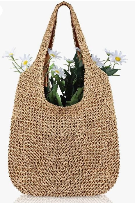 Generic - حقيبة يد كروشيه للصيف - بطانة داخلية لون أسود - جيب داخلى بسوسته - حقائب هاند ميد حقائب توت للشاطئ