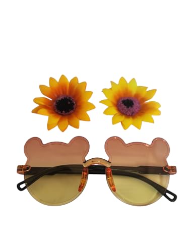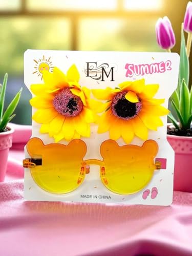 - مزايا التصميم: مشابك شعر رائعة على شكل دب للنظارات الشمسية مزينة بلمسات زهرة عباد الشمس النابضة بالحياة، مثالية لتصفيف الصيف