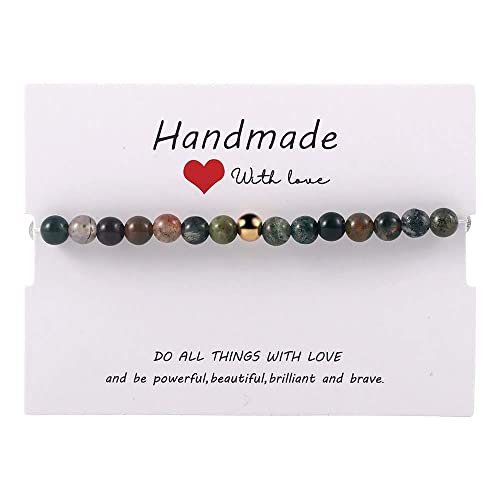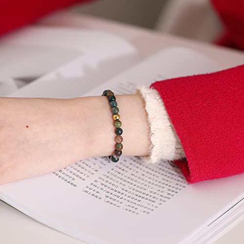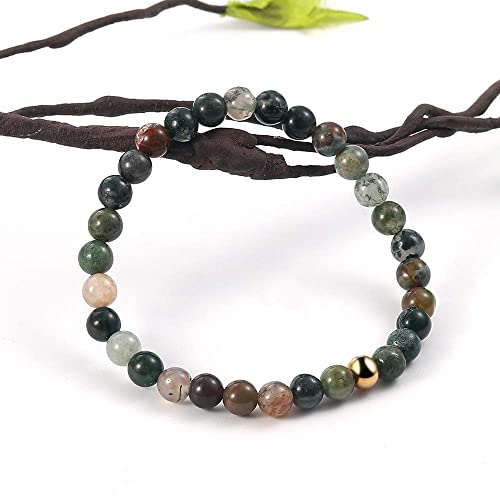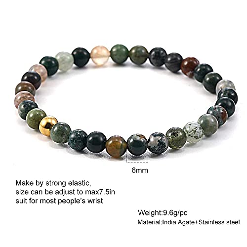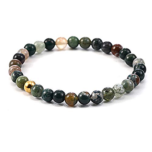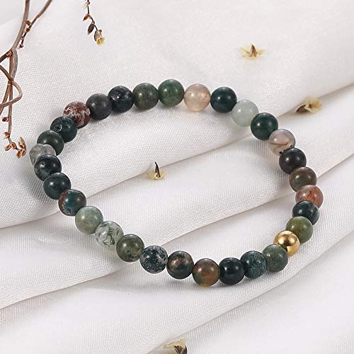 Generic - SUMMER LOVE 6mm Natural Gemstone Beaded Stretch Bracelet Handmade Semi Precious Golden Stainless Steel Bead Elastic Healing Stone Bracelet