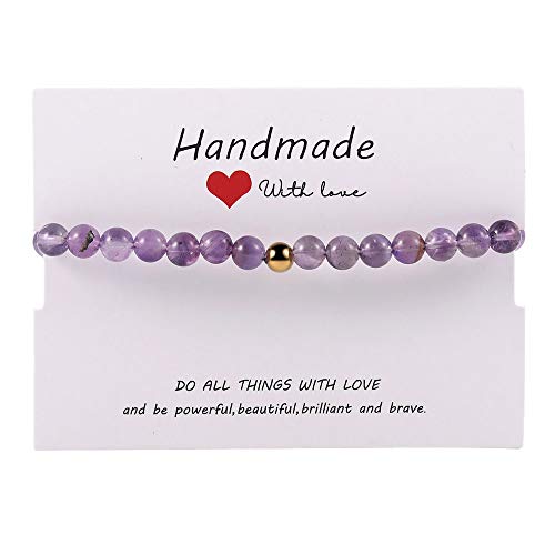 Generic - سوار خرز من احجار كريمة وشبه طبيعية مرن ومصنوع يدويا مع خرزة الستانلس ستيل الذهبي 6 ملم الشفاء سامر لوف الأولاد للنساء بنات للرجال