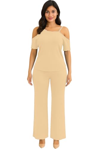 GAMAL SONS FOR ABAYA - طقم بيجامة صيفية مكون من قطعتين مكون من تيشرت نصف كم وبنطلون، بيج جمال صنز للعباية، GS-198-51342 - بيج