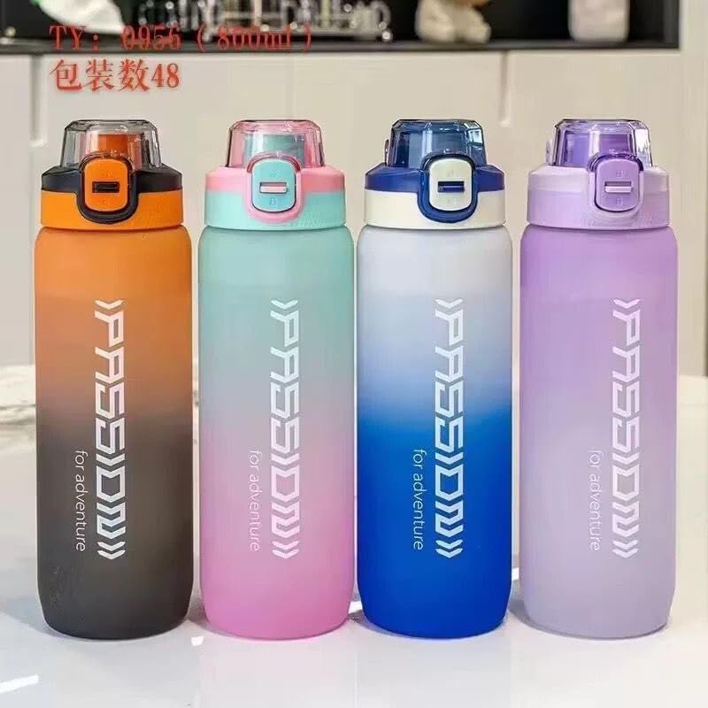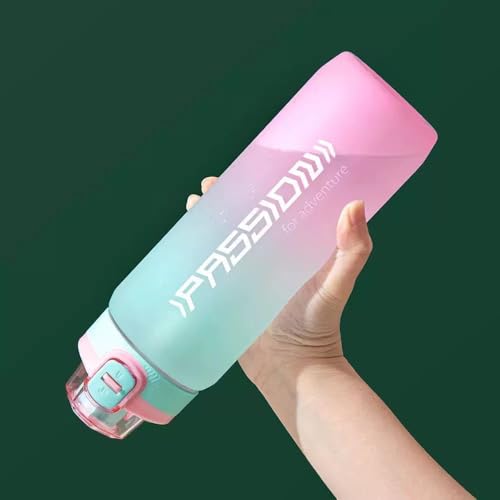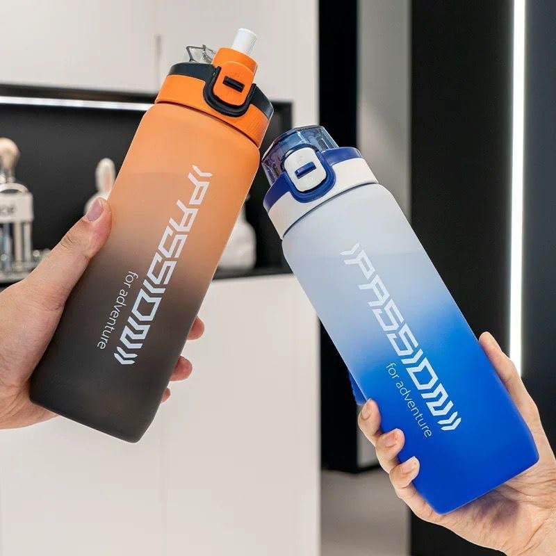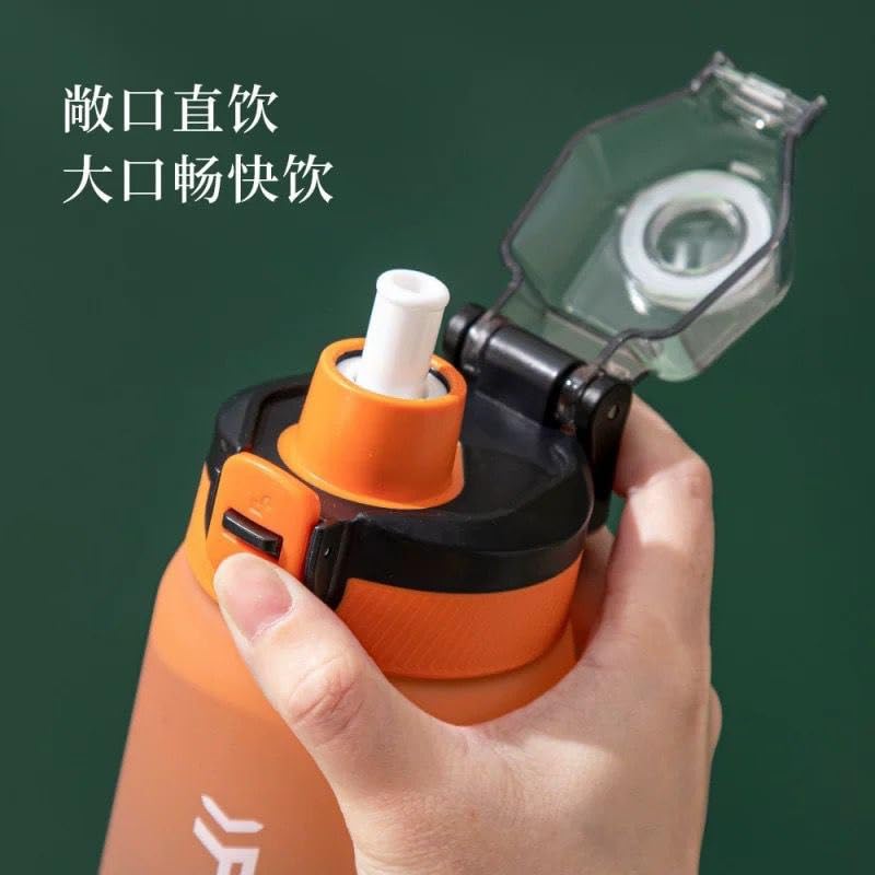 Generic - زجاجة مياه رياضية صيفية للياقة البدنية للرجال مع مقبض للفتيات متدرج اللون وسعة كبيرة وكوب ماء من القش عالي المظهر (اسود)