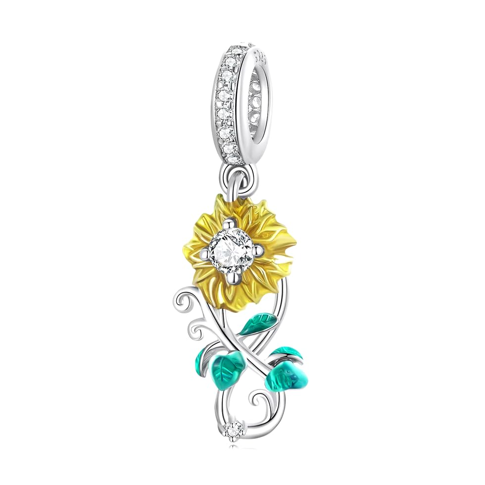 Generic - دلاية على شكل زهرة عباد الشمس - فضة استرليني عيار 925، يتميز التصميم بعباد الشمس بلون ذهبي مزين بحجر مركزي لامع