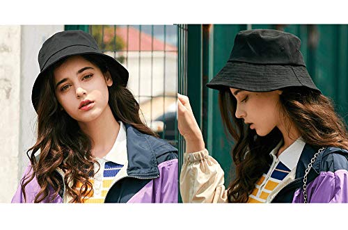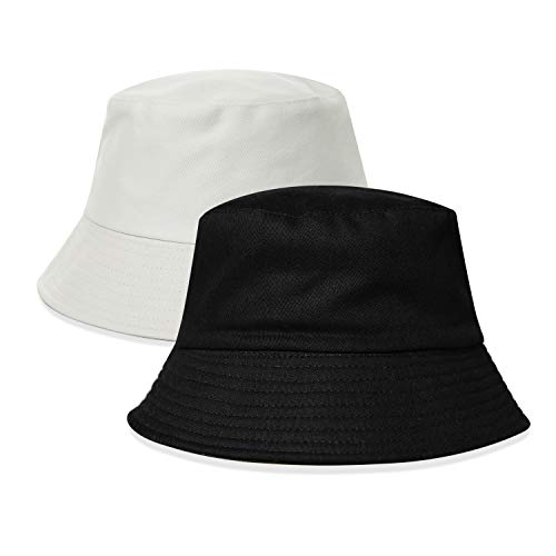 FGSS - قبعة دلو صلبة من الشمس للجنسين في الهواء الطلق - صياد قابلة للطي للحماية الأشعة فوق البنفسجية ، أسود + أبيض 2 قطعة مقاس واحد