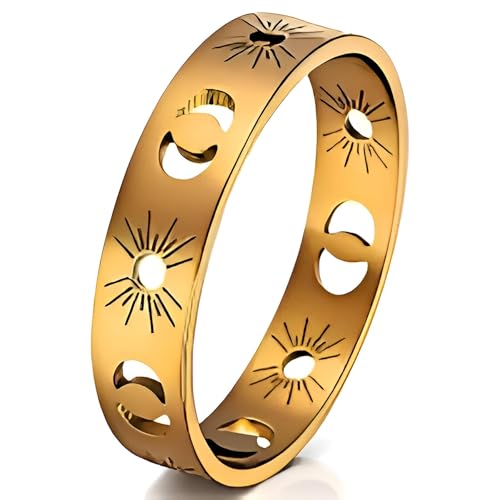 Generic - خاتم بتصميم رمز الشمس، خاتم بسيط وجريء من الفولاذ المقاوم للصدأ بتصميم كوني مقاوم للماء للعرائس الباحثين عن قطعة زفاف مميزة وغير تقليدية