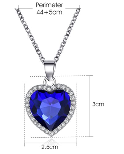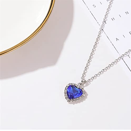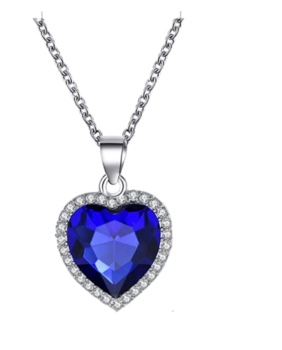 Sun-Tshirt - سلسلة كلاسيكية مصنوعة من خليط معدني بدلاية على شكل قلب مزينة بحجر راين فصوص سفير ابيض، فضي - مثالية كهدية للنساء والبنات