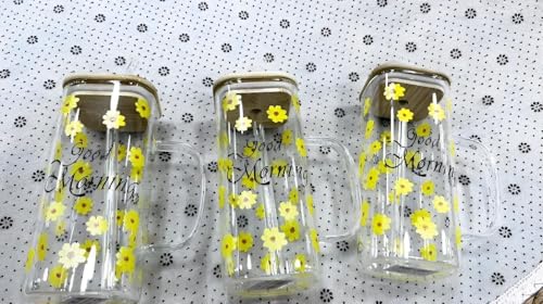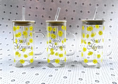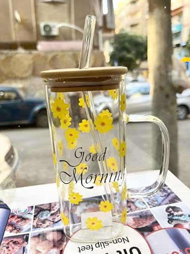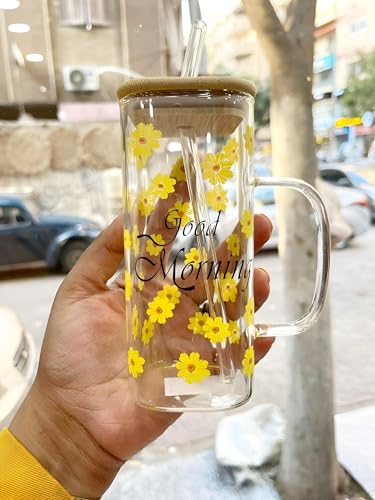 Generic - مج قهوة بتصميم زهرة عباد الشمس - كوب زجاجي كبير فريد سعة 400 مل، متين تحت المشروبات الساخنة او الباردة، شكل جميل للراحة والاناقة، مثالي للاستخدام في المنزل او المكتب.