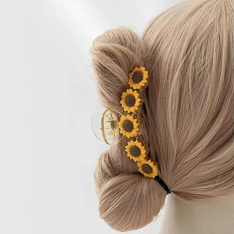 - مشبك شعر بتصميم زهرة عباد الشمس - ستحصل على مشبك شعر على شكل زهرة واحدة، مثالي لإضافة لمسة من الرومانسية والأناقة إلى أي تصفيفة شعر، وديكور جميل لتصفيفة الشعر لمختلف الاحتفالات أو الارتداء اليومي.