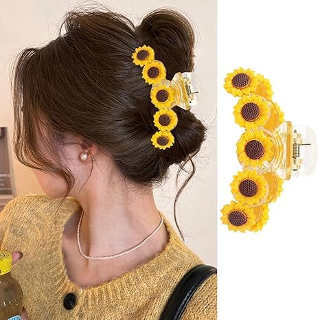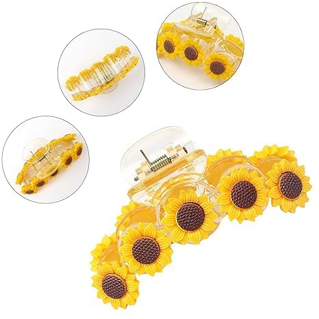 fashion mania - مشبك شعر على شكل زهرة عباد الشمس كبيرة من الاكريليك قوي التثبيت، مشابك شعر عصرية لطيفة مضادة للانزلاق