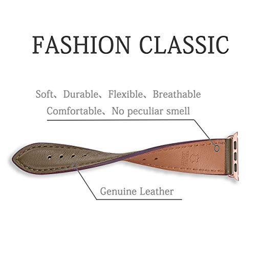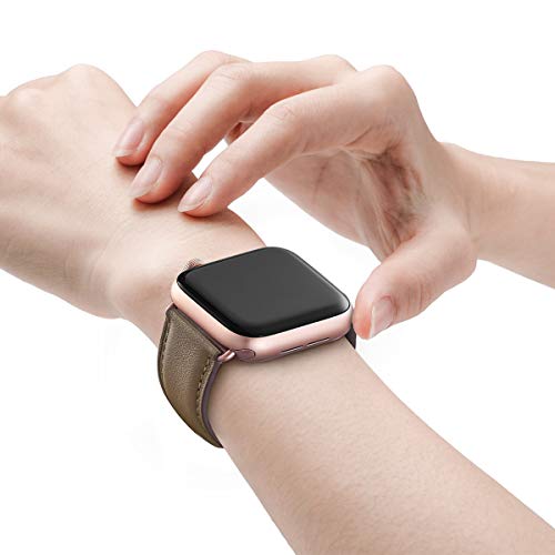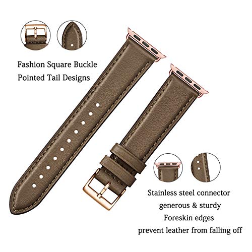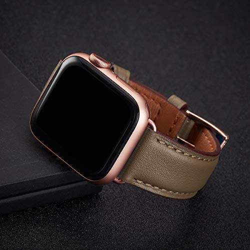 SUNFWR - سوار ساعة جلد طبيعي متوافق مع ابل بمقاس 42 ملم و44 و45 للرجال والنساء من صنفير بديل لساعة اي ووتش سلسلة 7 6 5 4 3 2 1 - SE - سبورت مقاس و44 و45 بيج رمادي وررز جولد